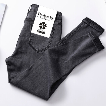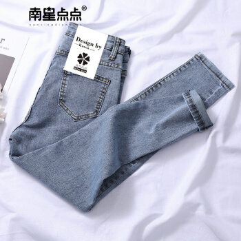 南星点点牛仔裤女九分秋装新款网红泫雅高腰显瘦加绒长裤紧身小脚裤子 浅蓝灰九分(偏深) 27 |