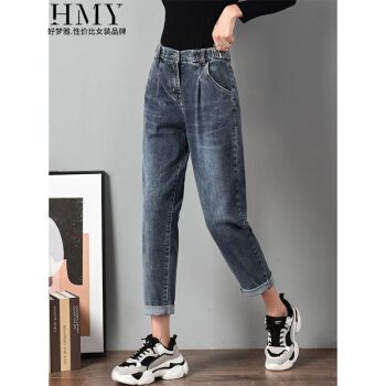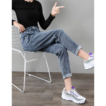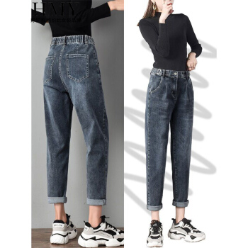 【好质量】好梦雅 高腰牛仔裤女裤宽松春秋季薄款新款韩版哈伦裤宽松显瘦萝卜女裤子直筒泫雅老爹裤 228款【蓝灰色】 28 【建议105斤-115斤】 |