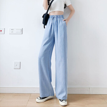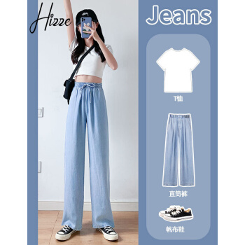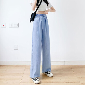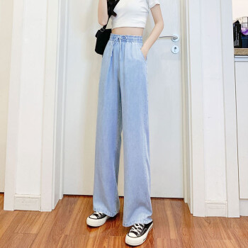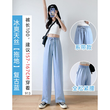 【精选女裤】Hizze天丝牛仔阔腿裤女裤夏季新款薄款高腰垂感直筒长裤韩版宽松显瘦百搭 复古蓝【拖地裤】 请拍正确尺码 |
