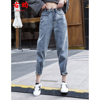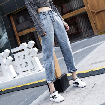 【2件特价】右昀 牛仔裤女夏季薄款九分老爹裤子新高腰网红泫雅宽松哈伦春秋萝卜潮 7768浅蓝色 L【适合110-120斤】 |