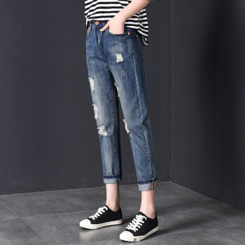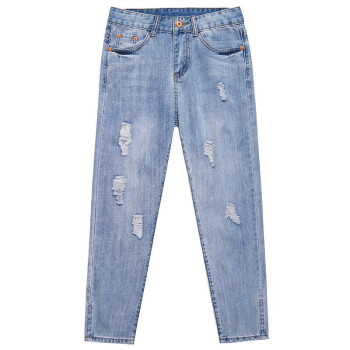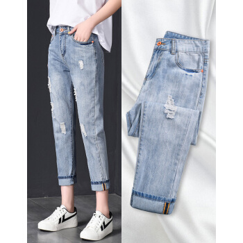 【2件特价】右昀 破洞牛仔裤女装九分裤宽松潮烂夏季薄款新款高腰显瘦春秋老爹乞丐裤子 浅蓝(正常腰) 28【适合106-110斤】 |