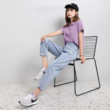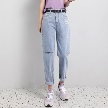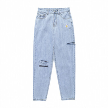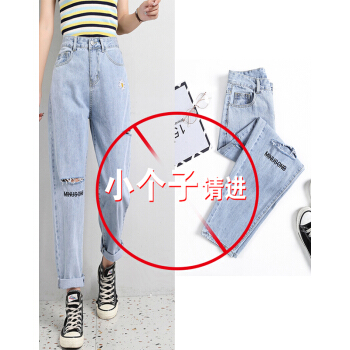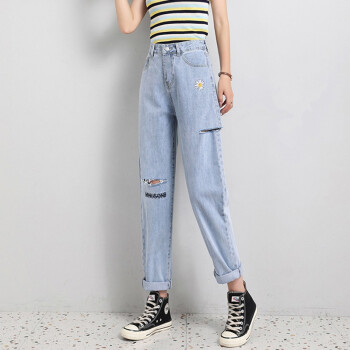 阅樱破洞牛仔裤女夏薄新款女裤高腰直筒九分裤女宽松大码胖妹妹显瘦老爹裤萝卜裤垮裤学生小雏菊裤子 破洞款 L |