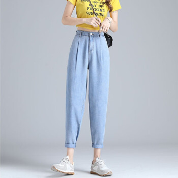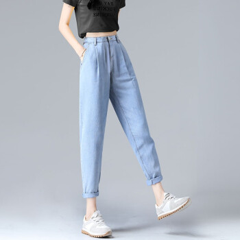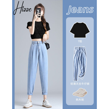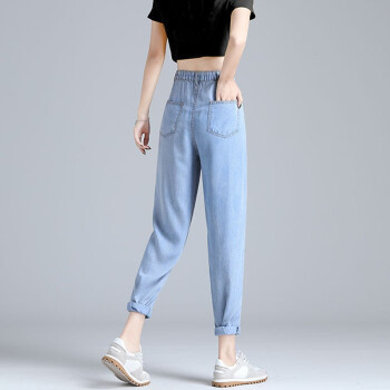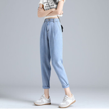 【精选好货】Hizze天丝牛仔裤女裤夏季新款薄款宽松高腰显瘦九分萝卜裤冰丝超薄百搭老爹哈伦裤 复古蓝 请拍正确尺码 |