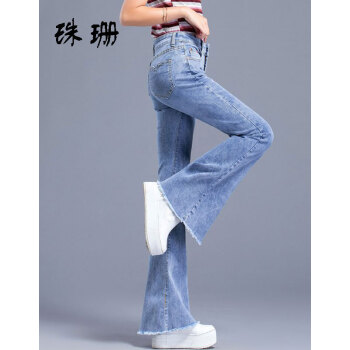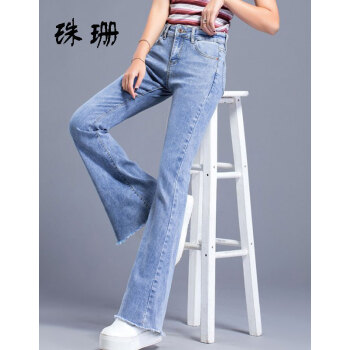 珠珊中高腰牛仔裤女春秋新款裤子女装微喇裤拖地裤女长裤大码女装垂感休闲裤女 3799-浅蓝色 29码【110-120斤左右】 |