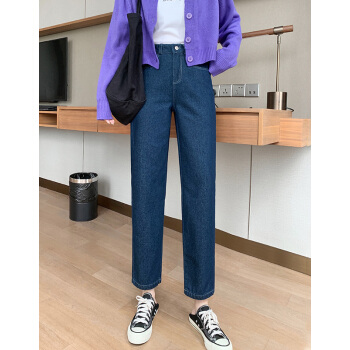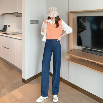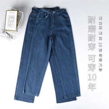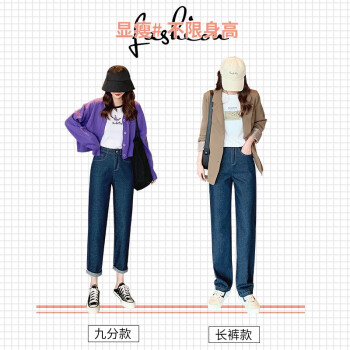 【2件特价】好梦雅 牛仔阔腿裤女春秋季薄新款九分宽松垂感高腰显瘦小个子拖地直筒裤 九分款-深蓝色 S【适合80-95斤】 |