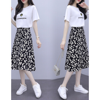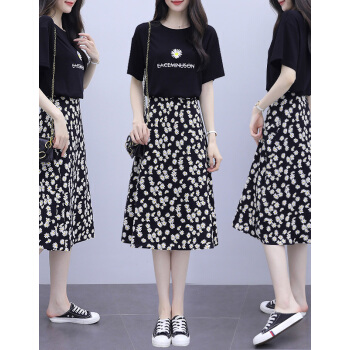 BABIBOY 半身裙套装女夏季新款韩版连衣裙中长款两件套套装裙小个子修身显瘦时尚减龄裙子 黑色 M |