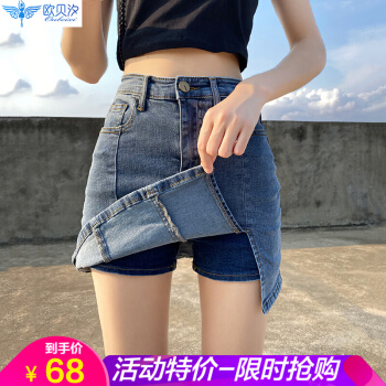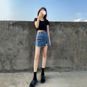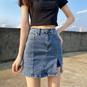 欧贝汐牛仔裙半身女夏季薄款高腰侧开叉包臀短裙裤子裙半身裙 复古蓝 M |