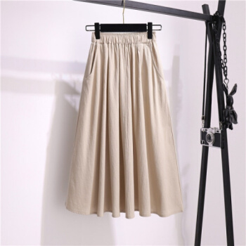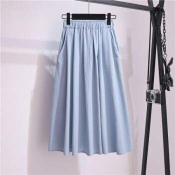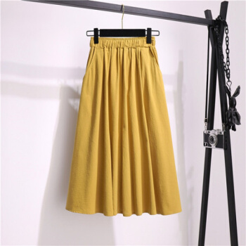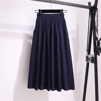 阅樱半身裙女中长款A字大摆棉麻半身裙森系伞裙纯色文艺带口袋半裙宽松大码基础款裙子夏 深蓝色 均码(80-130斤) |