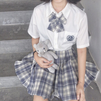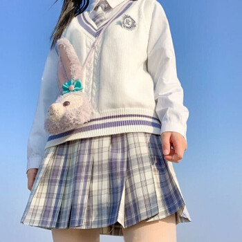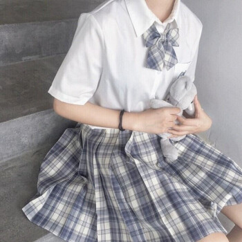 【温柔一刀】jk制服兔姬舍中牌制服馆夏季少女格裙正品啦啦酱正版学院风格裙日系高腰百褶裙半身短裙 温柔一刀(格裙+领结) S |