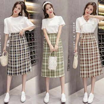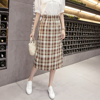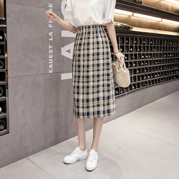 阅樱半身裙女中长款 新款女装韩版格子高腰下半身裙子学生裙包臀裙一步裙显瘦百搭夏 绿色 均码 |