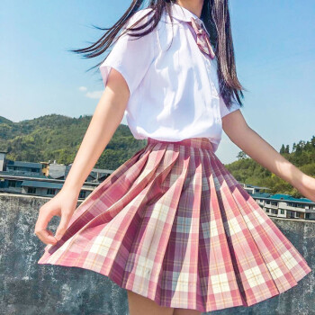jk制服馆学院风夏季新款格裙百褶裙水手裙女学生日系不良少女正统校服短裙格子裙半身裙 不死川格裙+领结 S |