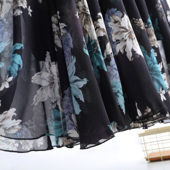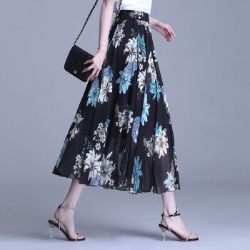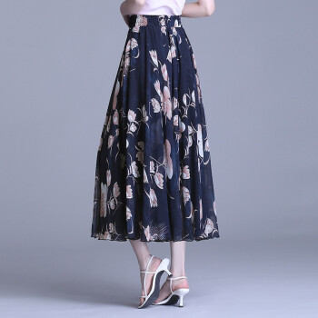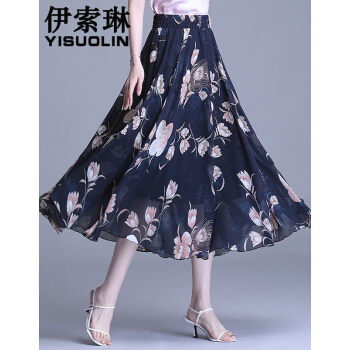 伊索琳碎花裙半身裙中长裙女夏新款高腰印花中长款垂感雪纺半身裙 蓝底红花 均码 80-140斤 |