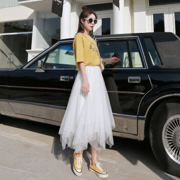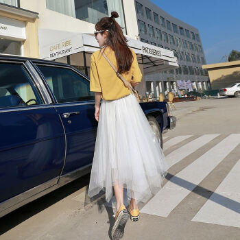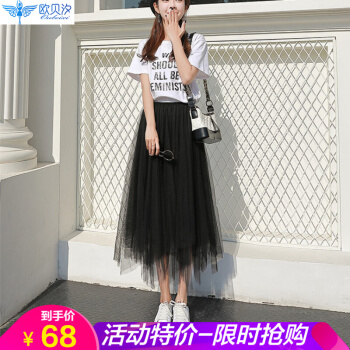 网纱半身裙女春夏季中长款学生大摆纱纱裙新款百褶中长裙仙女裙子 黑色 均码 |
