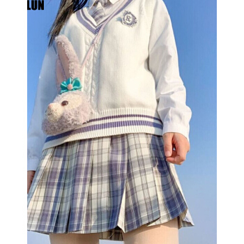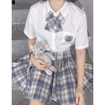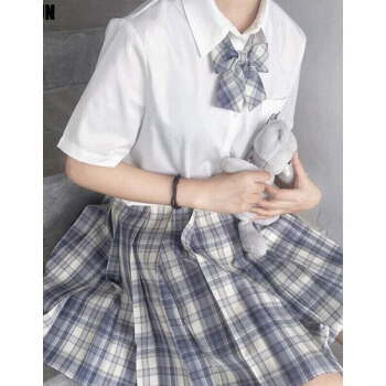 【全套】兔姬舍正统原创jk制服格子裙日系制服裙学院风高腰半身裙百褶裙衬衫套装学生校园风温柔一刀正品 女白浩海短袖+一刀短裙+领结 L |
