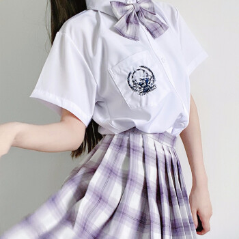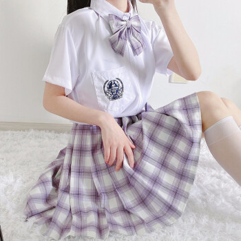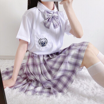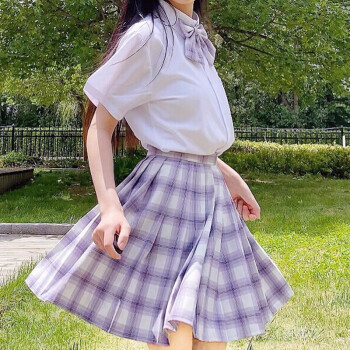 萧遇电竞少女jk制服温柔一刀格裙套装连衣裙中牌制服馆裙子学生校服百褶裙兔姬舍短裙A字裙包臀半身裙夏女 薰衣草格裙+刺绣衬衣+领结#209 M |