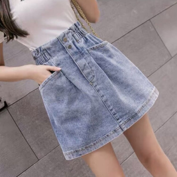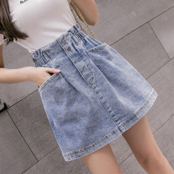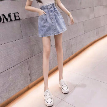 YUDA牛仔裙半身裙春夏新款女高腰显瘦松紧小清新大码百搭包臀裙显瘦短裙子 主图浅蓝 M 95-110斤 |