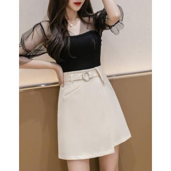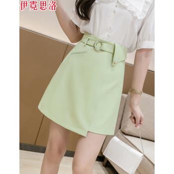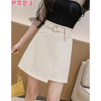 伊霓思洛半身裙女夏季高腰新款短裙子韩版不规则A字裙时尚女装显瘦职业裤裙 黑色 M |