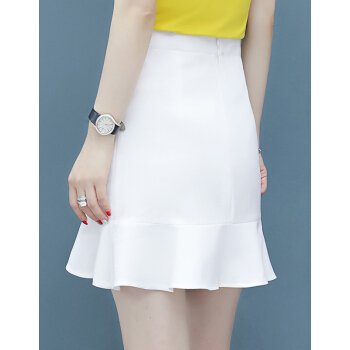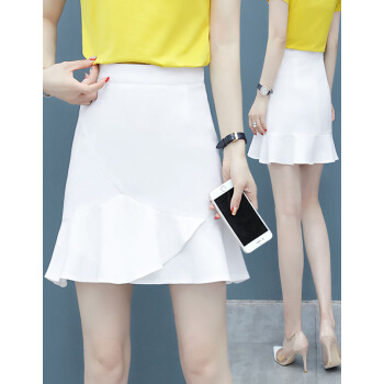 芳帛a字半身裙女夏季新款高腰显瘦不规则短裙子百搭韩版荷叶边包臀鱼尾裙 白色 S |
