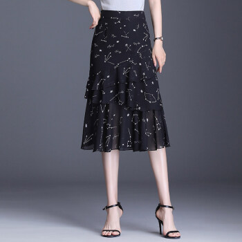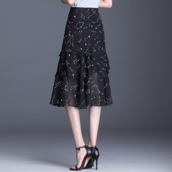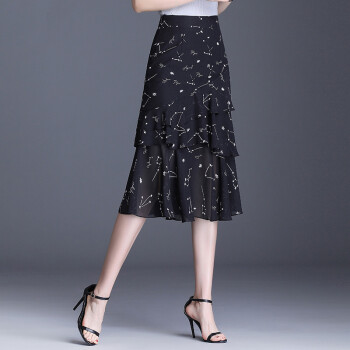 欧偲麦 a字裙半身裙夏季女士雪纺鱼尾裙中长款百褶裙子新款高腰蛋糕 9722 花色 XL/29 |