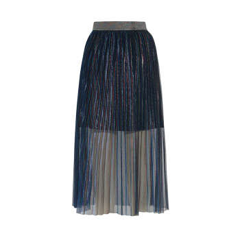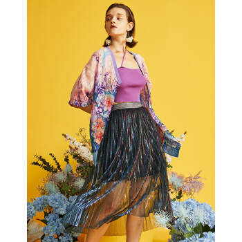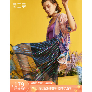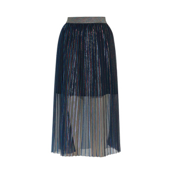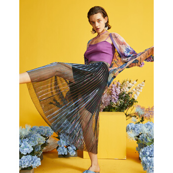 两三事 轻盈曼舞 早秋新款时尚彩色亮丝百褶a字半身裙 彩色 L |