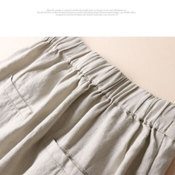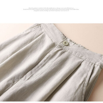 麦潮尚夏季新款九分亚麻阔腿裤女宽松棉麻裤休闲裤薄款高腰大码女裤 卡其色 M |