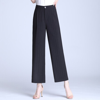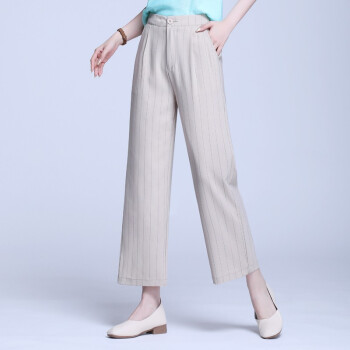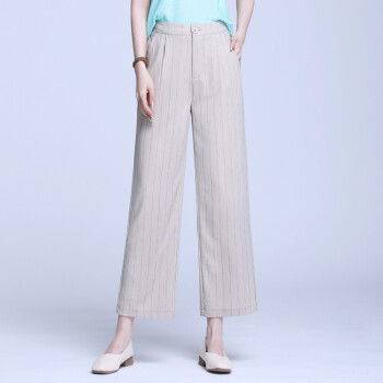 信和祥休闲裤女高腰条纹阔腿裤女春夏季新品韩版弹力垂感加大码直筒裤女士长裤 杏色 3XL【31】 |