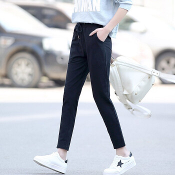 南极人 女裤夏季新款韩版时尚九分裤休闲裤运动裤女原宿风显瘦薄款小脚裤子简约潮 JY619 黑色 请拍正确尺码 |