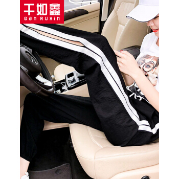 干如鑫休闲裤女运动裤女夏薄款新款九分束脚休闲怪味哈伦裤百搭宽松九分灯笼雪纺裤纱显瘦裤子女 黑色 XL(105-120斤) |