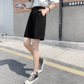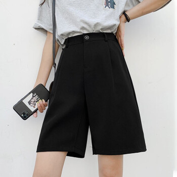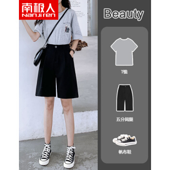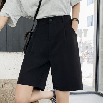 南极人 西装短裤女夏宽松新款休闲显瘦黑色直筒雪纺高腰阔腿裤五分减龄中裤 YYR892 黑色-真门襟 请拍正确尺码 |