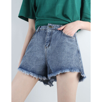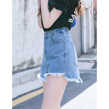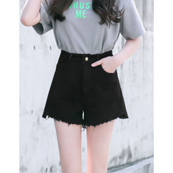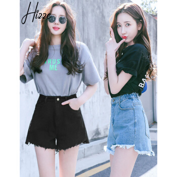 【精选女裤】Hizze 短裤女夏新款韩版宽松学生百搭高腰chic白色破洞牛仔裤显瘦减龄热裤潮 【斜边】黑色 请拍正确尺码 |