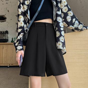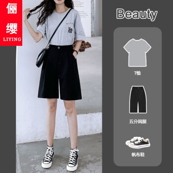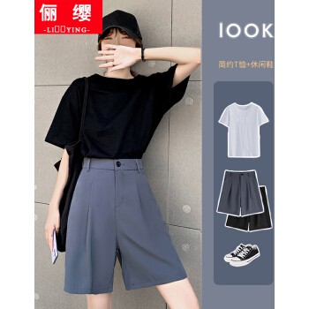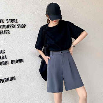 俪缨短裤女西装裤短款阔腿女夏季新款韩版中裤帅气高腰垂感港味冰丝薄款百搭潮流黑色五分裤子 灰色 L【106-120斤】 |