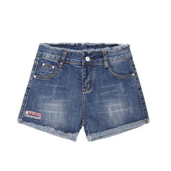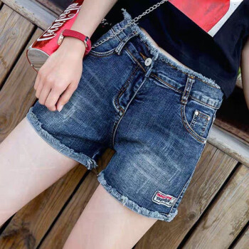 沫澜仟衣牛仔短裤女夏季新款韩版高腰显瘦休闲百搭裤子女宽松时尚毛边a字热裤 深蓝 26码 |