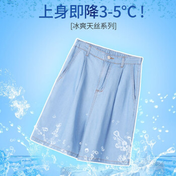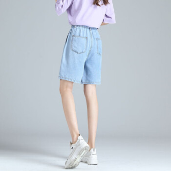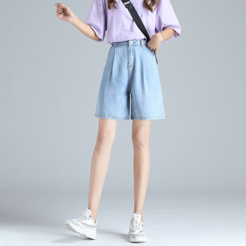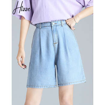 【精选女裤】Hizze天丝牛仔短裤女高腰新款夏季薄款宽松百搭a字阔腿冰丝五分中裤休闲 复古蓝 请拍正确尺码 |