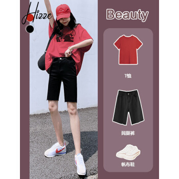 【品质好货】Hizze牛仔短裤女新款高腰显瘦休闲直筒裤夏季薄款紧身外穿五分骑行中裤 黑色 M |
