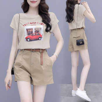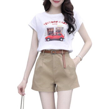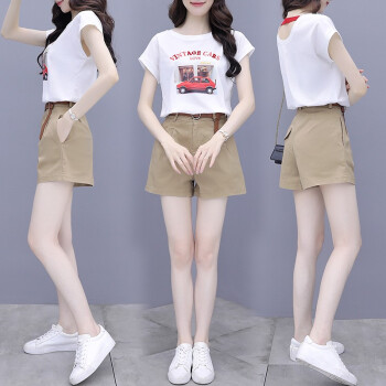 思语林 短裤套装女夏季新款时尚洋气减龄气质小个子T恤休闲职业两件套女 白色套装 M |