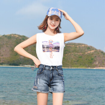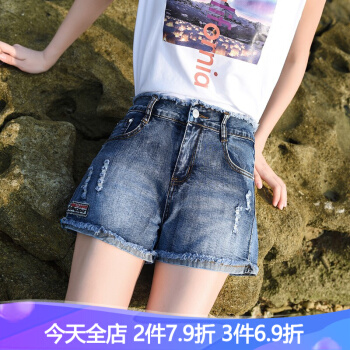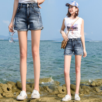 破洞牛仔短裤女夏季新款韩版高腰弹力显瘦宽松外穿a字休闲百搭毛边热裤 中蓝 28码 |