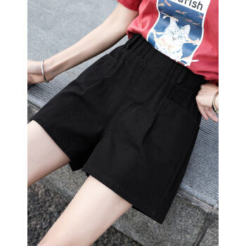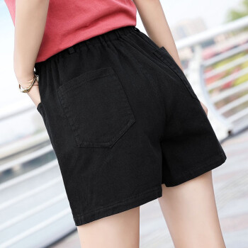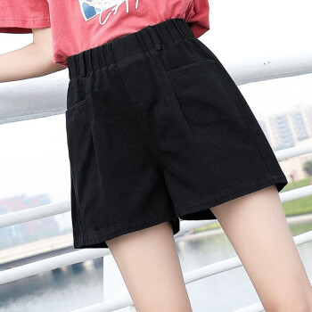 【2件特价】右昀 短裤女夏新款韩版高腰显瘦阔腿休闲宽松三分学生薄款热裤女大码牛仔短裤 黑色 L【适合105-115斤】 |