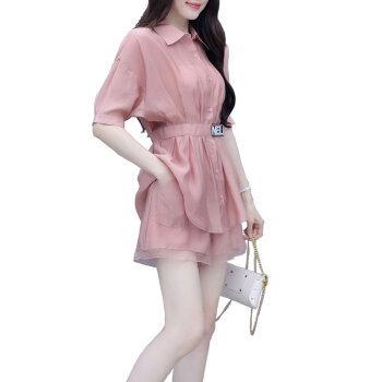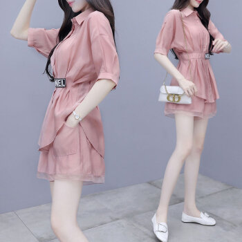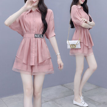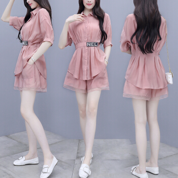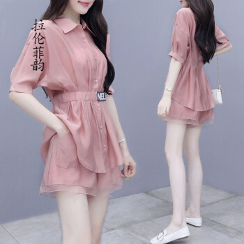 拉伦菲韵 品牌气质女装 棉麻显瘦两件套新款夏季休闲时尚短裤套装女洋气粉色减龄 粉色 M |