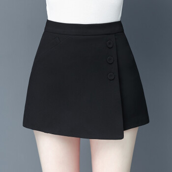 芳帛短裤女夏季新款韩版黑色百搭外穿裙裤宽松高腰显瘦白色a字裤 黑色 L |