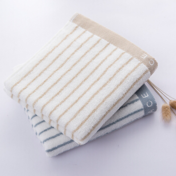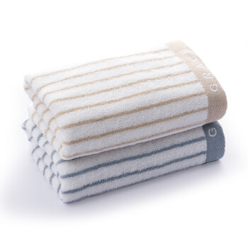 洁丽雅(Grace)毛巾家纺 经典条纹系列纯棉强吸水毛巾 二条装 兰/棕 72*34cm |