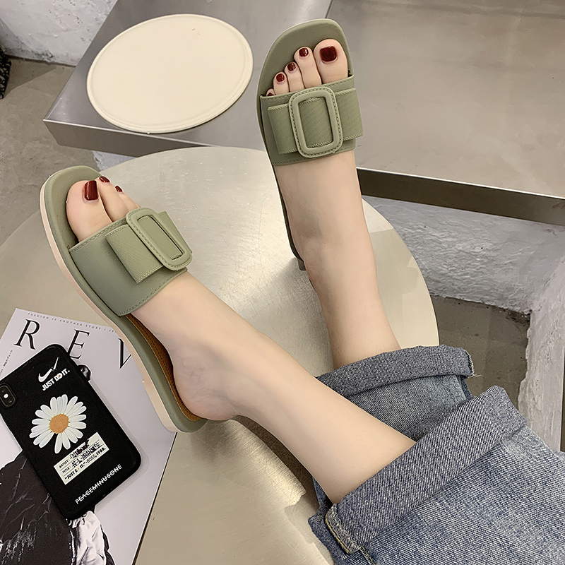 时尚方扣小清新风简约舒适柔软一字凉拖鞋【PVC/绿色】 |