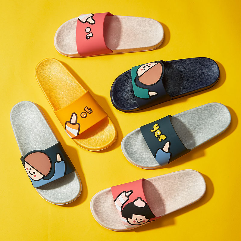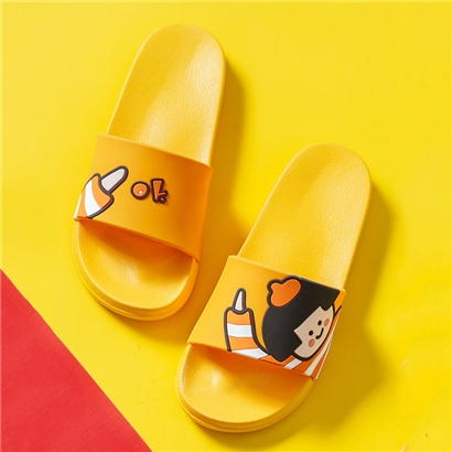 时尚卡通可爱趣味招手蘑菇头厚底舒适情侣凉拖鞋【pvc/金黄】 |