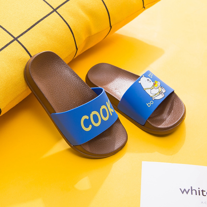 可爱卡通趣味送餐熊撞色亲子款凉拖鞋【橡塑/棕色/宝蓝【童鞋】】 |