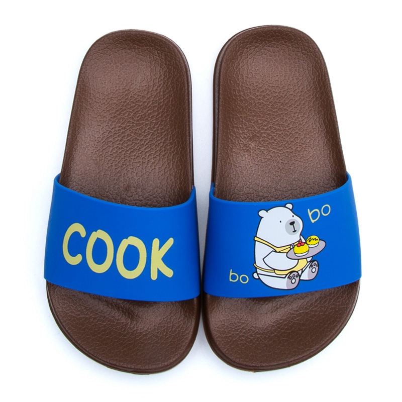 可爱卡通趣味送餐熊撞色亲子款凉拖鞋【橡塑/棕色/宝蓝【童鞋】】 |