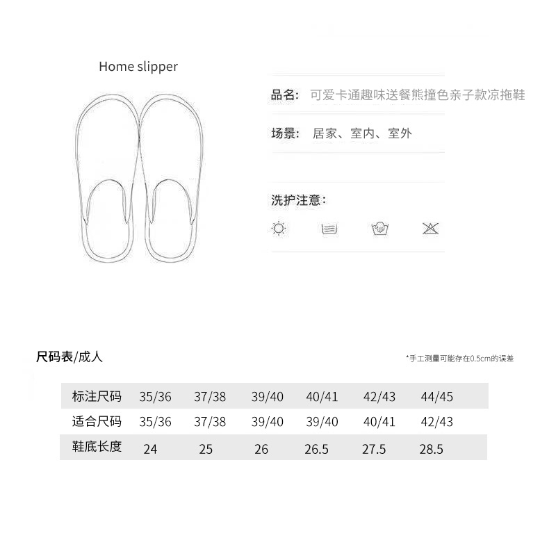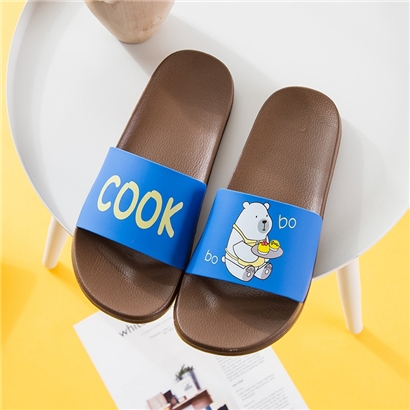 可爱卡通趣味送餐熊撞色亲子款凉拖鞋【橡塑/棕色/宝蓝】 |