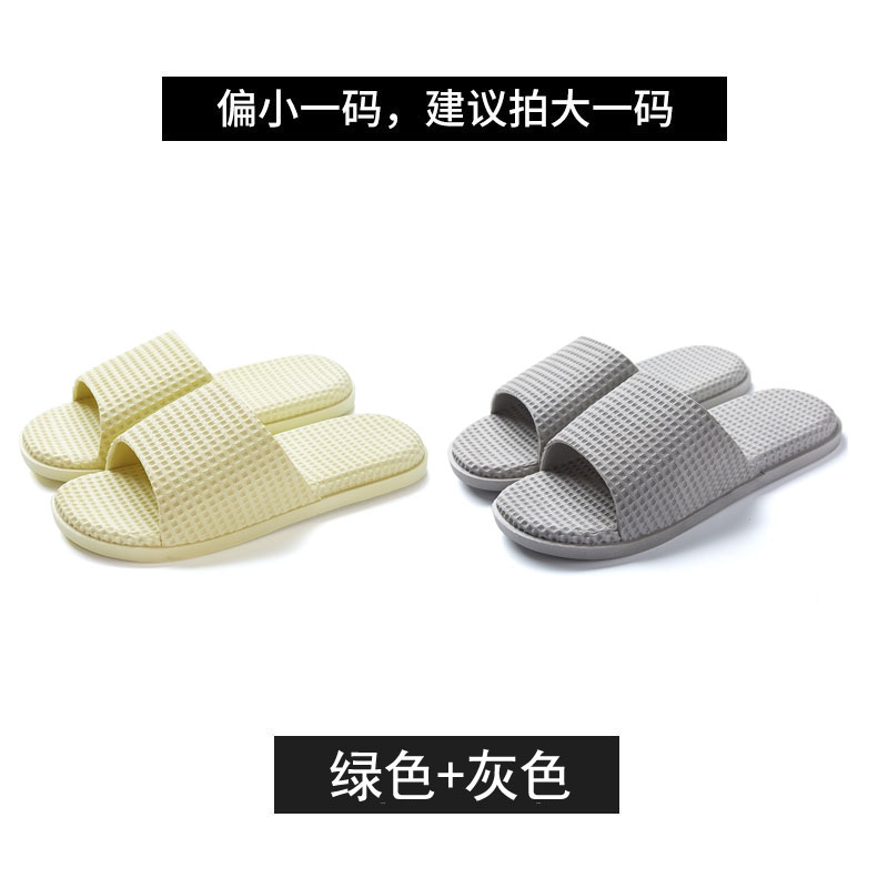 纯色华夫格浴室居家PVC凉拖鞋两双装【PVC/浅绿+浅灰】 |