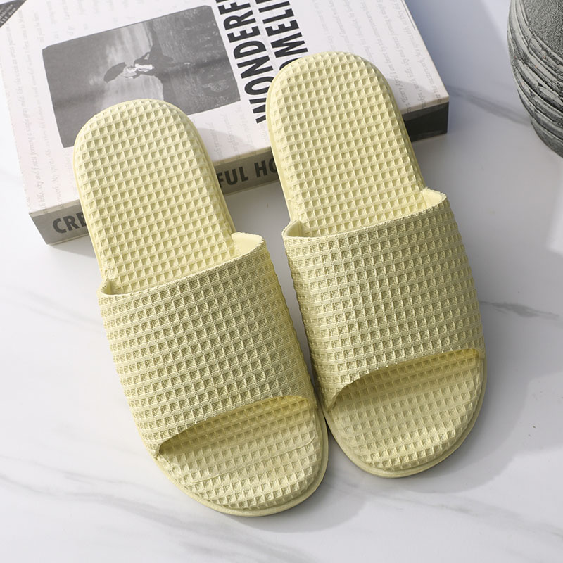 纯色华夫格浴室居家PVC凉拖鞋两双装【PVC/浅绿+浅灰】 |