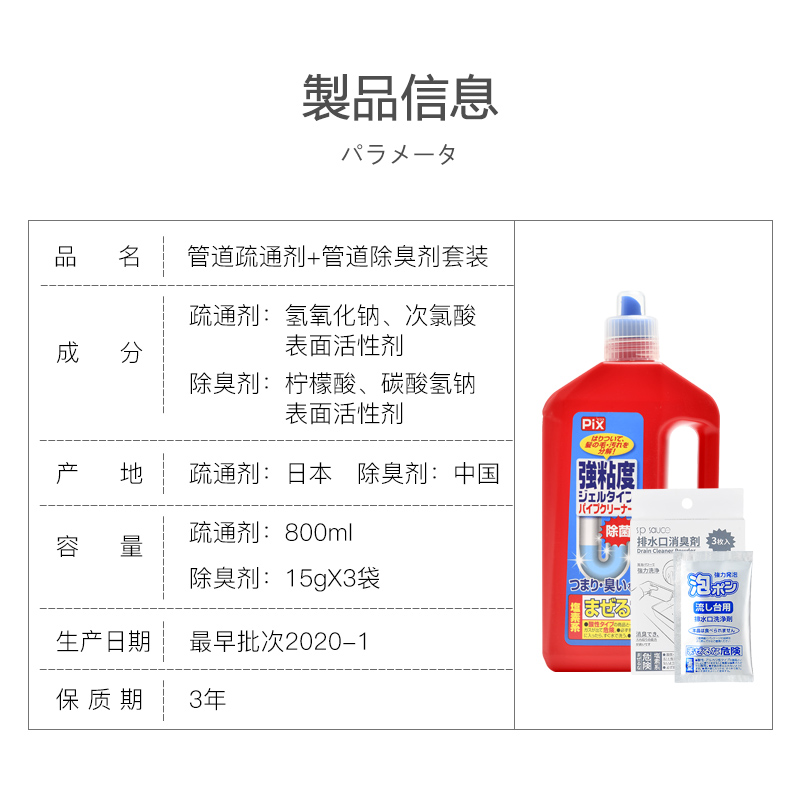 日本进口管道疏通剂+管道除臭剂 |