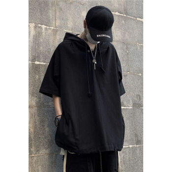卫衣男连帽ins潮牌新品薄款夏季时尚短袖T恤男夏装衣服七分潮流五分半袖男士外套体恤男装 黑色 XXS |