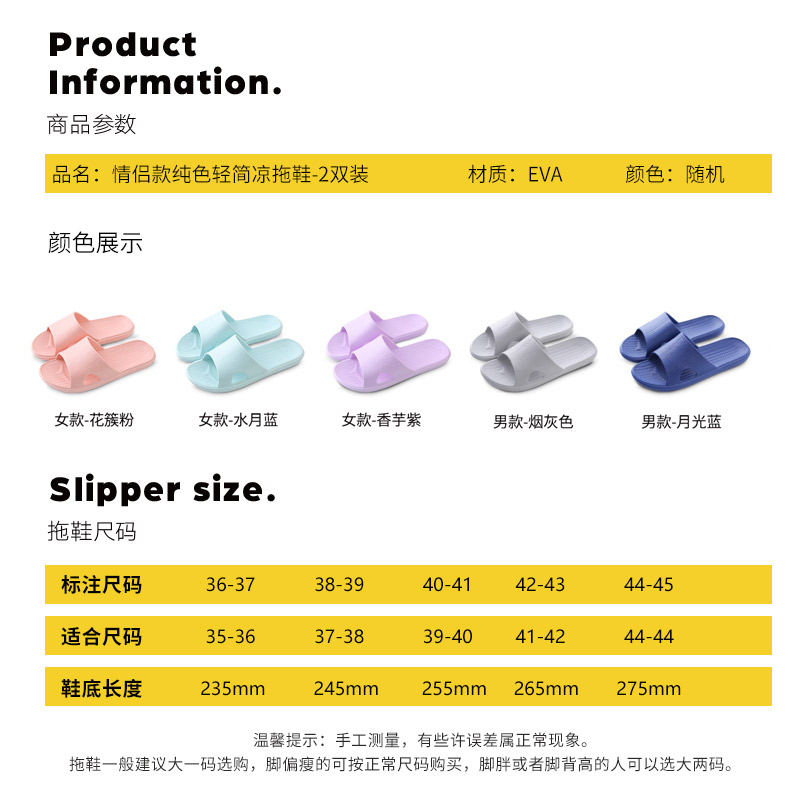 【超值单品】两双装 情侣云朵轻质休闲凉拖鞋【EVA/随机色】 |